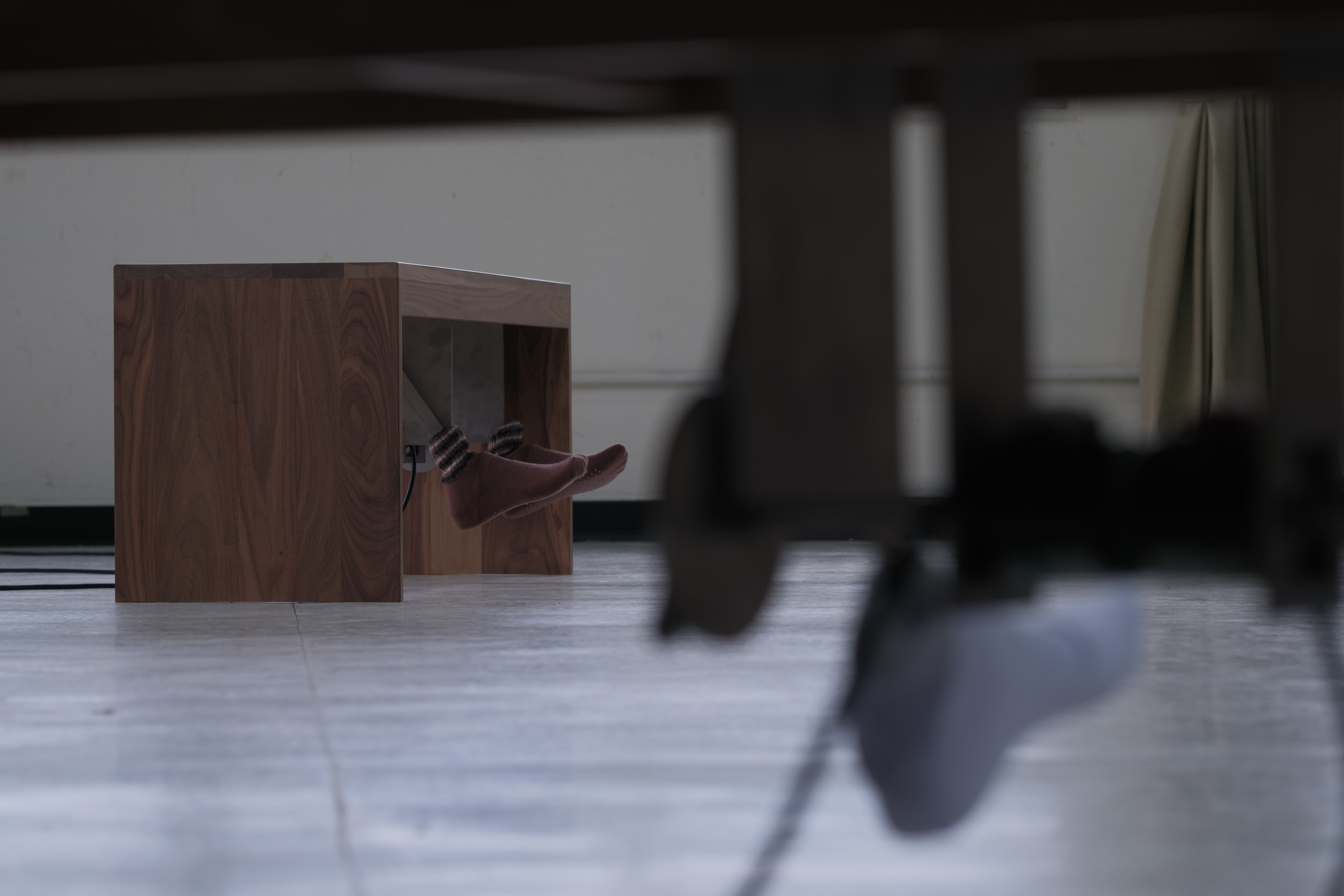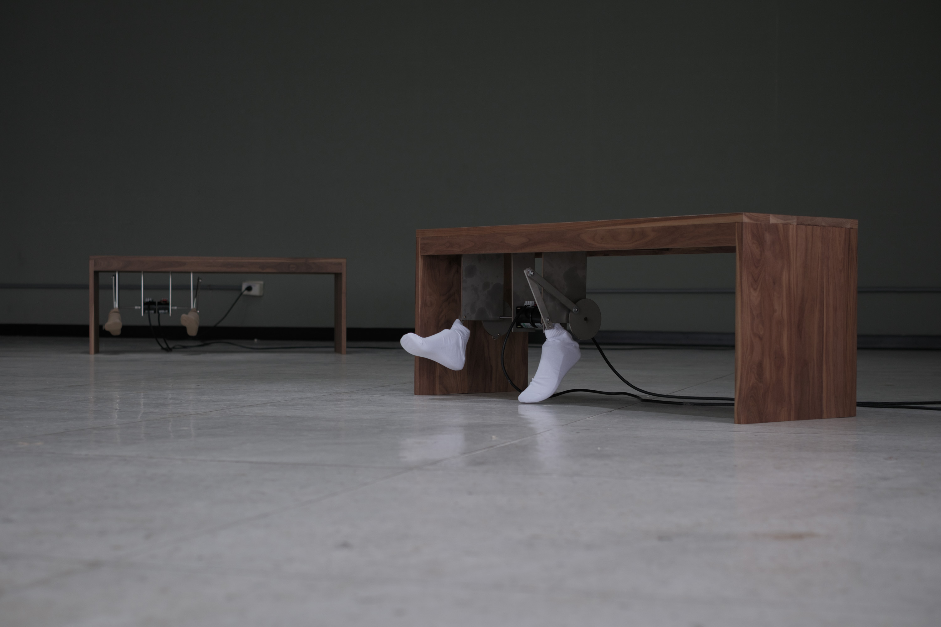 黑胡桃木、襪子、馬達、金屬零件 ,尺寸依場地,王仲平攝影,臺灣,2025。